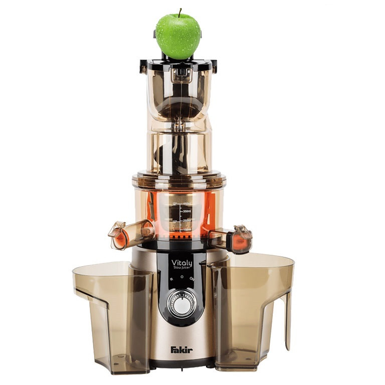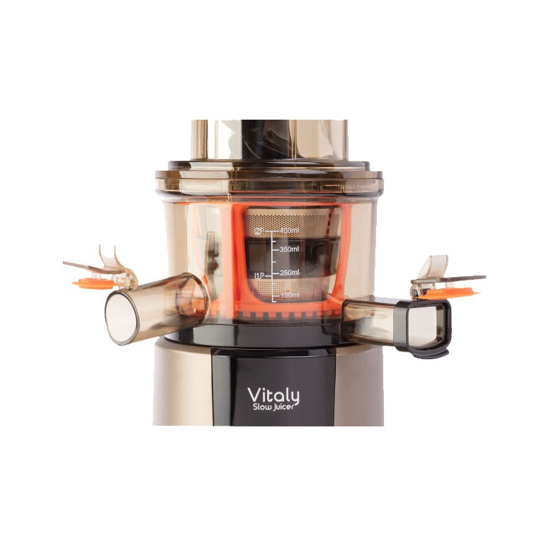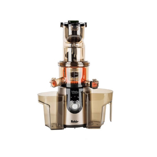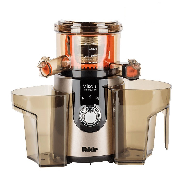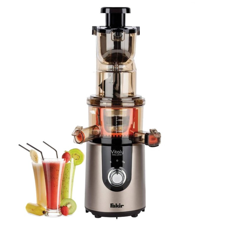آبمیوه گیری فکر پالپی مدل VITALY دستگاهی خوش ساخت می باشد که ظاهری شبیه به عصاره گیر دارد و رنگ بدنه ی آن نیز نقره ای می باشد. شما می توانید به وسیله ی این دستگاه نوشیدنی های متنوعی را تهیه کنید. به ویژه در فصول گرم سال مانند تابستان که مصرف نوشیدنی های خنک و متنوع بسیار زیاد می شود، وجود چنین دستگاهی در هر خانه می تواند کارساز باشد. همانطور که می دانید مصرف آبمیوه های طبیعی تبدیل به امری مرسوم در جامعه ی امروزی شده است. و اکثر افراد برای حفظ سلامتی جسم خود ترجیح می دهند که از آبمیوه های خانگی و طبیعی استفاده کنند. جنس بدنه ی این محصول از پلاستیک مقاوم ساخته شده است که در مقابل ضربه ها و فشارهای مختلف دچار آسیب نخواهد شد.تفاله گیر : یکی از مهم ترین مزیت های این دستگاه آبمیوه گیری این است که دارای مخزن تفاله گیر می باشد. وجود مخزن تفاله گیر سبب می شود که تفاله های میوه های مختلف در این مخزن قرار بگیرند و وارد نوشیدنی شما نشوند. در نتیجه نوشیدنی کاملا خالصی را می توانید به وسیله ی این دستگاه تهیه کنید. علاوه بر این، ورود تفاله به موتور دستگاه آبمیوه گیری میتواند آسیب های جدی به آن وارد کند که وجود چنین مخزنی از این اتفاق نیز جلوگیری خواهد کرد. ظرفیت مخزن تفاله ی این دستگاه آبمیوه گیر برابر با هشتصد میلی لیتر است. تیغه : جنس تیغه های این آبمیوه گیر نیز از استیل ضد زنگ ساخته شده است. که مقاومت و دوام بالایی دارد و در اثر شستشوی پی در پی دچار زنگ زدگی نمی شود. این تیغه ها بسیار بُران هستند و به همین سبب به افزایش سرعت عمل دستگاه کمک شایانی می کنند. اجزای همراه :فرچه تمیز کننده و دسته فشار دهنده و کاسه ها