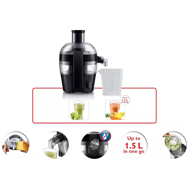 قطعات قابل شستشو در ماشین ظرفشویی / جنس تیغه استیل ضد زنگ / سیستم ضد چکه دارد / عملکرد پالس خیر / ظرفیت جمع و جور و خانوادگی - با ظرفیت ۱.۵ لیتر، آبمیوه تازه برای تمام خانواده را در یک مرحله تهیه کنید، به اندازهای که برای پر کردن شش لیوان بدون نیاز به خالی کردن ظرف تفاله کافی است / ظرف شفاف - با ظرف شفاف تفاله، تبدیل میوهها و سبزیجات به آبمیوه را تماشا کنید، بنابراین دقیقاً میدانید چه زمانی باید آن را خالی کنید / انطباق با اتحادیه اروپا بله