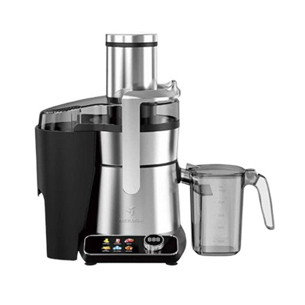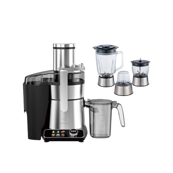 آبمیوهگیری مباشی ME-JB2014 با توان 1000 وات، عملکرد چندکاره شامل آبمیوهگیری، مخلوطکن، خردکن و آسیاب، دهانه بزرگ، بدنه استیل ضدزنگ و کنترل پنل دیجیتال لمسی است.