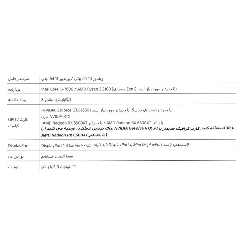 - غیر قابل دسترس بودن HDR، بازخورد هدست، ردیابی چشم، محرکهای تطبیقی و بازخورد لمسی (به غیر از rumble) هنگام بازی در PC