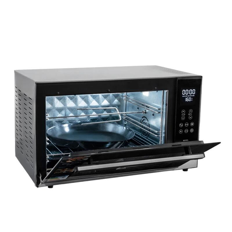 فن کانوکشن,شیشه دوجداره ,برد تمام دیجیتال ,المنت کم مصرف فوق هوشمند,سینی لعابدار مخصوص پیتزا,توری گریل مناسب طبخ ماهی،مرغ ،کیک