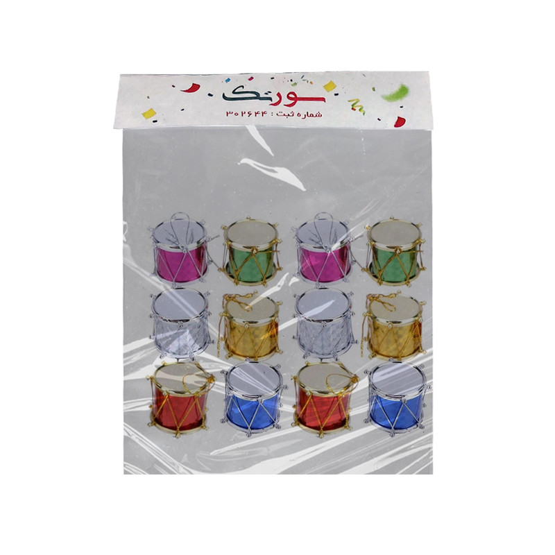 آویز تزیینی سورتک مدل طبل کریسمس کد ST0852 بسته 12 عددی