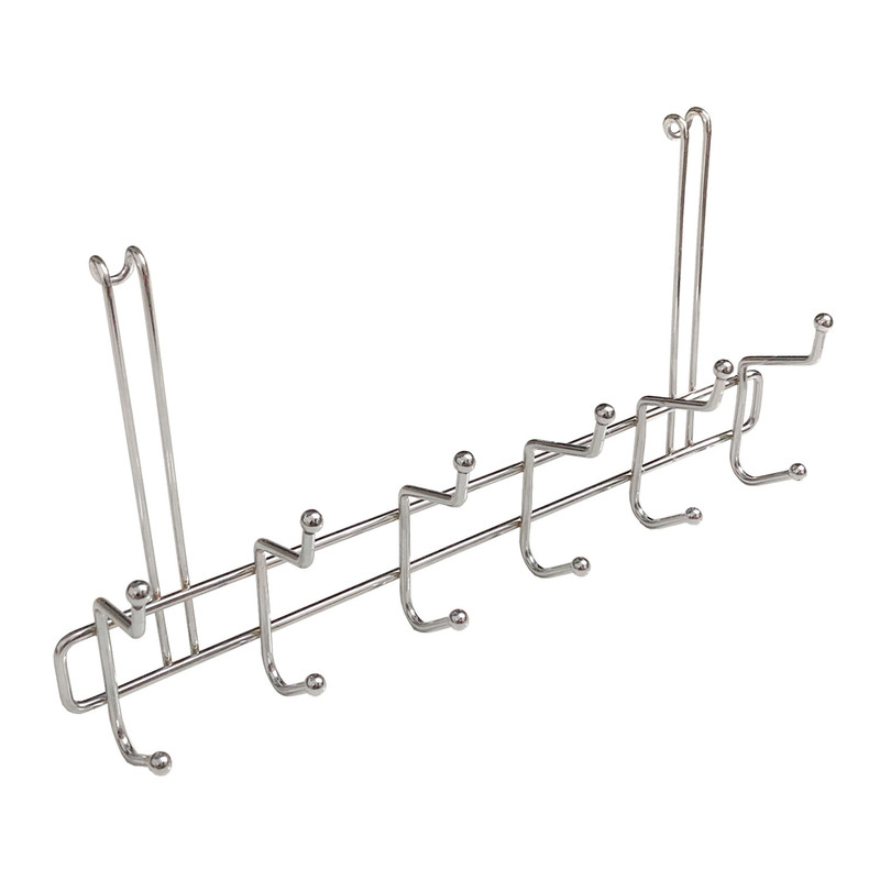 آویز لباس پشت دری 6 شاخه ضخیم (مفتول سنگین) کد AR-PD6Z کیفیت درجه با استحکام و تحمل وزنی بالا به دلیل به کارگیری مفتول ضخیم در ساخت, در دو رنگ آبکاری استیل و رنگ مشکی مات الکترو استاتیک