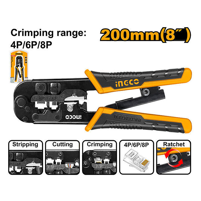 این آچار سوکت زن توانایی سوکت زدن سوکتهای 4 پین(RJ12)، 6 پین (RJ11) که مخصوص تلفن می باشند و سوکتهای 8 پین(RJ45) که مخصوص شبکه میباشند را دارد.