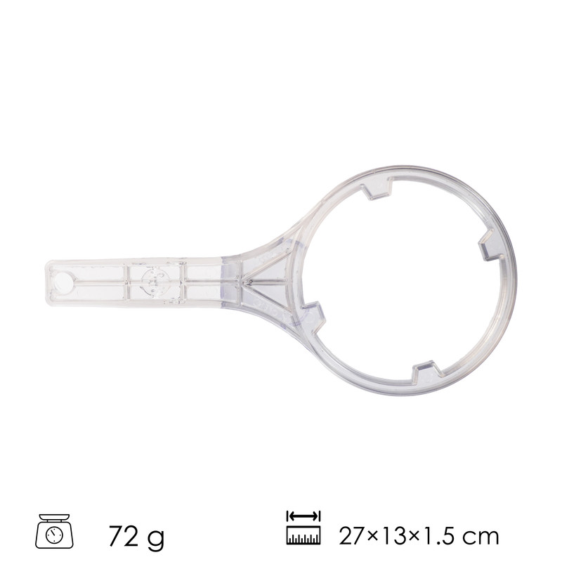 آچار هوزینگ خانگی HZK از پلی کربنات با طراحی ویژه برای تسهیل فرآیند باز و بسته کردن هوزینگهای دستگاه تصفیه آب، مقاوم و کاربردی.