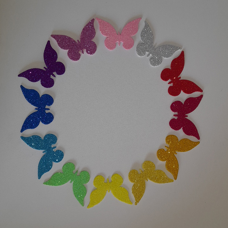 12 عدد پروانه رنگی اکلیلی از جنس فوم مناسب برای تزئینات و انواع کارهای هنری
