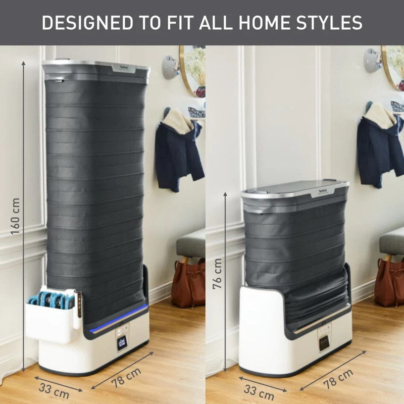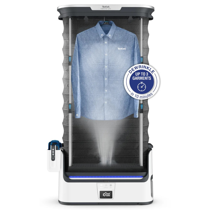 اولین بخارگر تمام اتومات تفال، بخارگر فوق پیشرفته تفال علاوه بر اینکه پاک کننده چین و چروک کامل لباس است قابلیت ضد عفونی البسه و همچنین از بین برنده بو لباس ها میباشد که شستشو لباس را به مراتب کاهش میدهد، تا 99.99 % از بین برنده باکتری ها و ضد عفونی میباشد که علاوه بر البسه میتوانید عروسک های پارچه ای را برای فرزندان خود ضد عفونی کنید، اتو کشی لباس های روزمره در کمترین زمان ممکن بدون نیاز به دخالت دست فقط کافیست البسه را آویزان کنید و بهترین نتیجه را از دستگاه خواهید، دارای سه حالت مختلف شامل: اتو کشی، ضدعفونی کننده، خشک کردن البسه، هر نوع پارچه ای از لطیف ترین لباس ها تا کت های زمستانی و اسباب های نرم کودک را میتوانید اتو کشی و ضد غفونی کنید، چرخه 40 دقیقه ای ضد عفونی کردن که تا 99.99% ویروس ها، باکتری ها و میکروب ها را از بین میبرد، چرخه 30 دقیقه ای جهت خشک کردن پارچه و البسه که با یک جریان ملایم هوای خنک البسه را خشک میکند، عملکرد بیصدا، مخزن آب 2 لیتری جداشو، دارای چهار عدد چرخ جهت جابجایی هر چند راحت تر و همچنین طراحی جمع شونده با صرفه جویی در فضا، دارای اکسسوری جانبی جهت اتصال به البسه نخی جهت باز شدن راحت تر چروک ها، دارای کنترل راه دور، طراحی و مهندسی محصول در کشور فرانسه مونتاژ نهایی در کشور چین