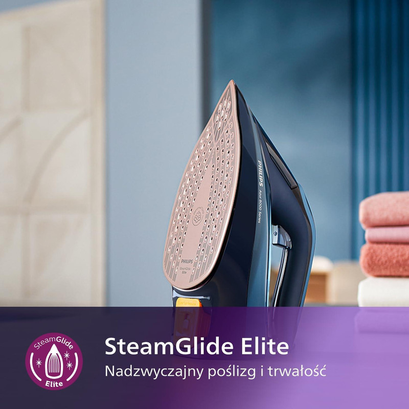 اتو بخار هوشمند، توان مصرفی 3000 وات، سیستم ضد رسوب ، دارای مخزن رسوب ، دارای بخاردهی عمودی ، گنجایش مخزن آب 300 میلی لیتر، جنس کفی اتو SteamGlide Elite Rosecopper ، طول کابل 3 متر، بخاردهی مداوم 3.55 گرم در دقیقه، بخاردهی لحظه ای 240 گرم، خاموش شدن خودکار