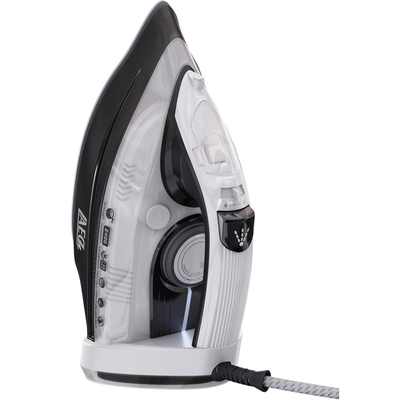 توان مصرفی 2400 وات-خروجی بخار 50 گرم بر دقیقه-کف سرامیکی-کابل نخی ابریشمی-ضد رسوب-بخار عمودی-دارای شوک بخار-دارای مخزن و لیوان آب-رنگ سفید_مشکی
