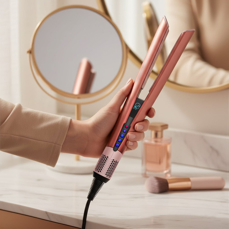 حالتدهی فقط با باد گرم و سرد - بدون گرم شدن مستقیم صفحههای تیتانیومی برای جلوگیری از آسیب دیدن موها با توان 1600 وات - قابل استفاده برای موهای مرطوب و خشک - درجه حرارت در سه حالت 80، 110، 140 سانتیگراد قابل تنظیم برای موهای مرطوب - درجه حرارت در سه حالت 120، 140 سانتیگراد و حالت Boost قابل تنظیم برای موهای خشک - صفحه نمایش OLED - دارای دکمه باد سرد با دمای 30 درجه - برنده جایزه طراحی TIME’s 2023 - دارای برنامه تمیزکننده خودکار - دارای دو سرعت باددهی دور ملایم و تند - سیستم قطع خودکار جریان باد بعد از 3 ثانیه در صورت استفاده نشدن - دارای فیلتر مکش هوای قابل شستشو و جداسازی - قابلیت جداسازی و شستشوی نازلهای باد - دارای تنظیمات تغییر زبان - نمایش درجه حرارت به فارنهایت یا سلسیوس - تنظیم مدت زمان خاموش شدن - فعالسازی سیستم Self Cleaner - ریست و بازنشانی تنظیمات کارخانه - دارای کلید قفل صفحات - خاموش شدن کامل دستگاه بعد از 3 دقیقه استفاده نشدن (قرارگیری در حالت افقی بدون جابهجایی) - دارای صفحه نمایش، سیستم یونساز، سیستم خاموشی خودکار، دکمه روشن/خاموش، دسته ارگونومیک، تقویتکننده توربو - قابلیت قفل کردن انبر برای استفاده بهعنوان سشوار - تشخیص خودکار مو و تنظیم شدت باد - صاف کردن مو با هوای گرم - عملکرد مشابه اتو مو بدون صفحات داغ