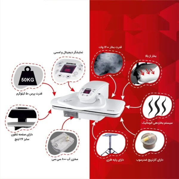 اتو پرس 1600 وات جانتک مدل 6400 همراه با پایه