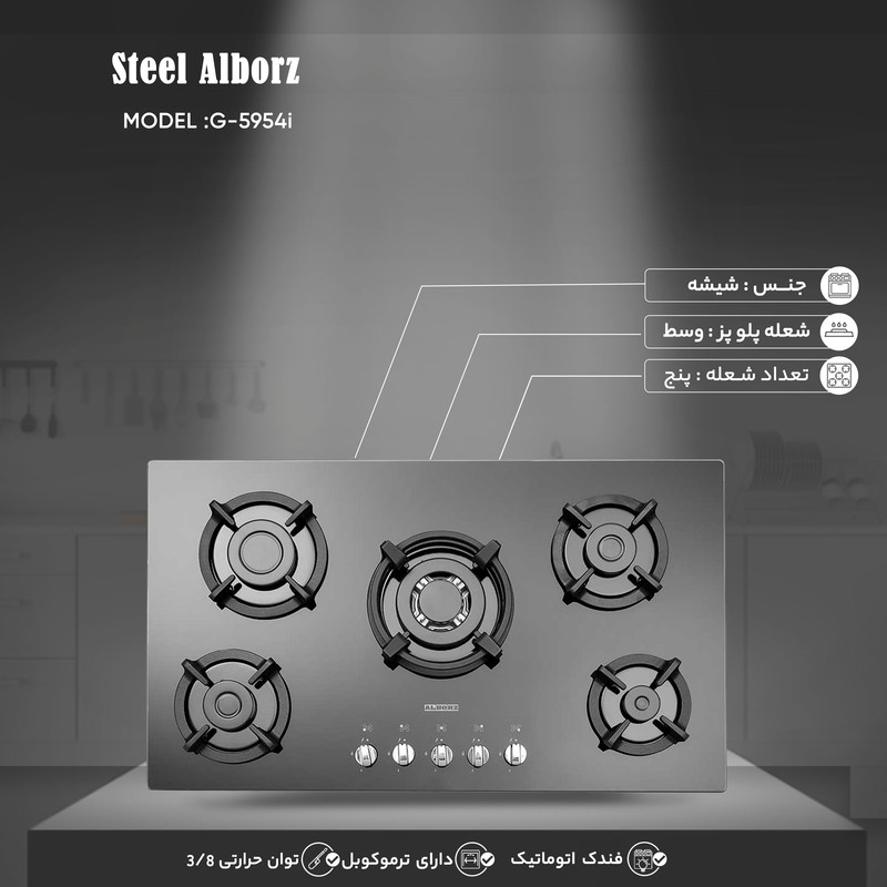 اجاق گاز صفحه ای استیل البرز مدل G-5954i