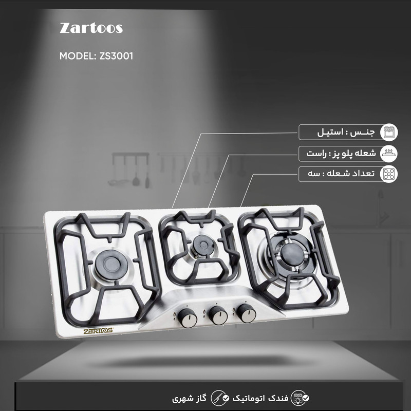 اجاق گاز صفحه ای زرتوس مدل ZS3001