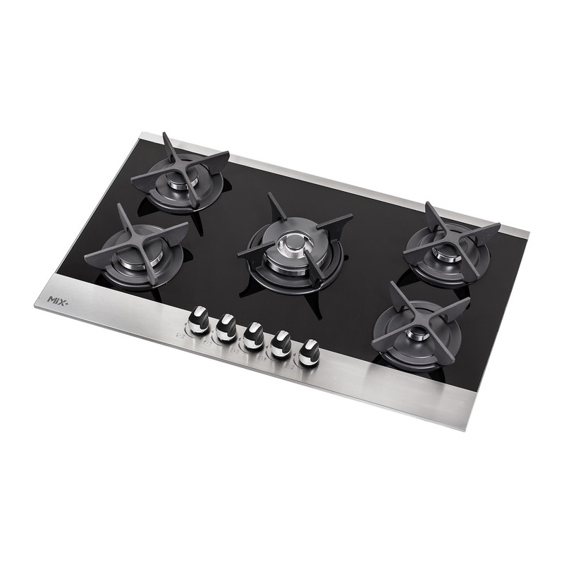 پنج شعله. شیشه مشکی . نوار استیل پایین و بالا . شیر و سر شعله ساباف ایتالیا . ترموکوپل TOPTIME