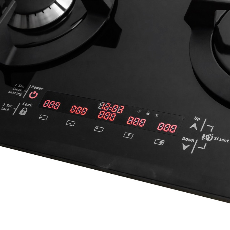 دارای تایمر مجزا برای هر شعله -صفحه شیشه 8 میلی متر سکوریت شده مقاوم در برابر ضربه و حرارت - مجهز به سیستم میکروسوئیچ نسوز - انجام تست نشت گاز - انجام تست نشت جریان الکتریسیته - انجام تست تحمل ضربه و حرارت برای شیشه -انجام تست تحمل حداکثر حرارت برای شیشه