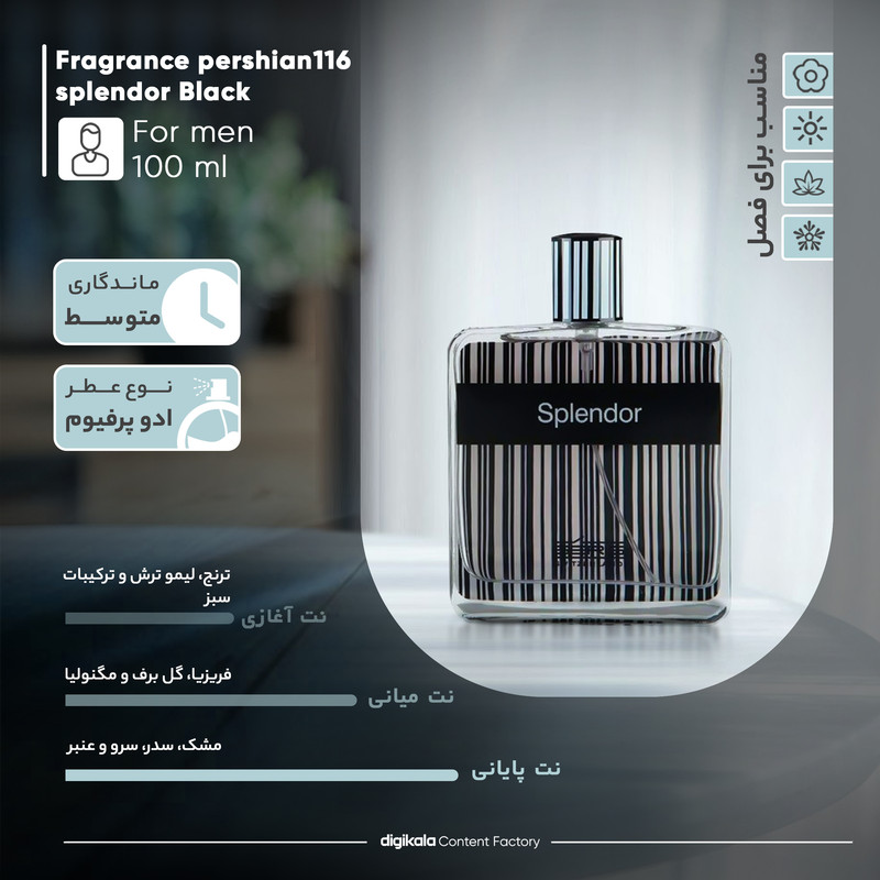 ادو پرفیوم مردانه فراگرنس پرشیا 116 مدل اسپلندور بلک حجم 100 میلی لیتر