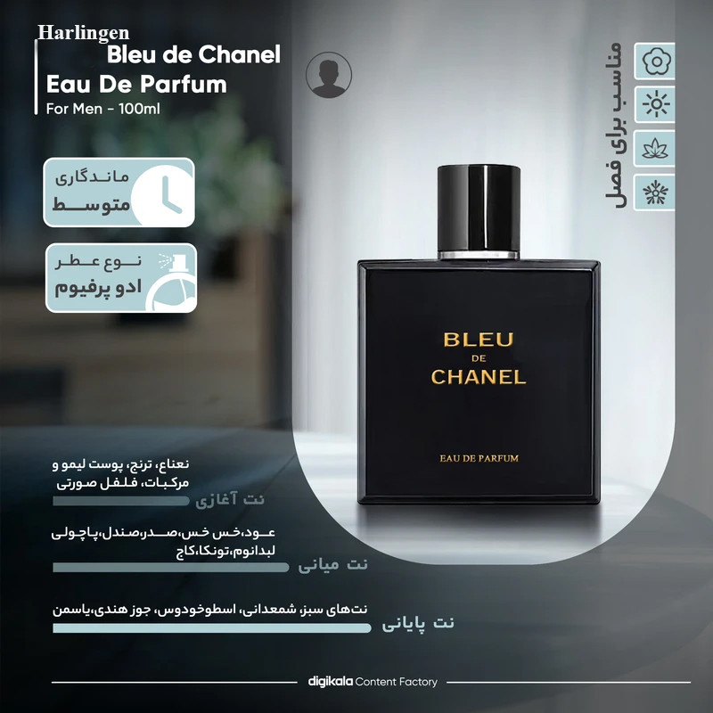 ادو پرفیوم مردانه هارلینگن مدل بلو شنل با رایحه خنک حجم 100 میلی لیتر