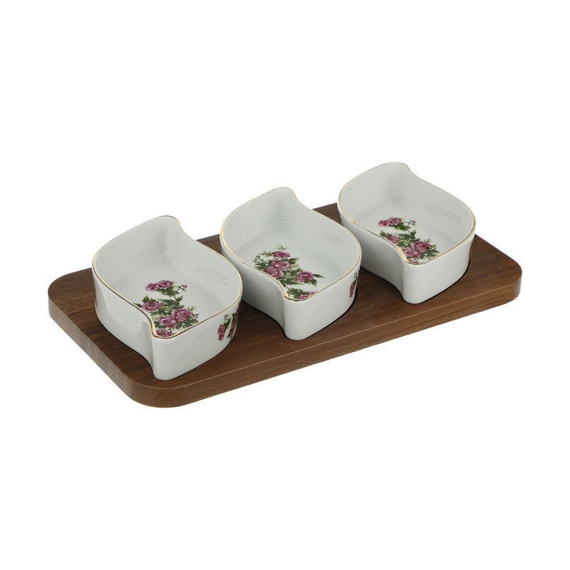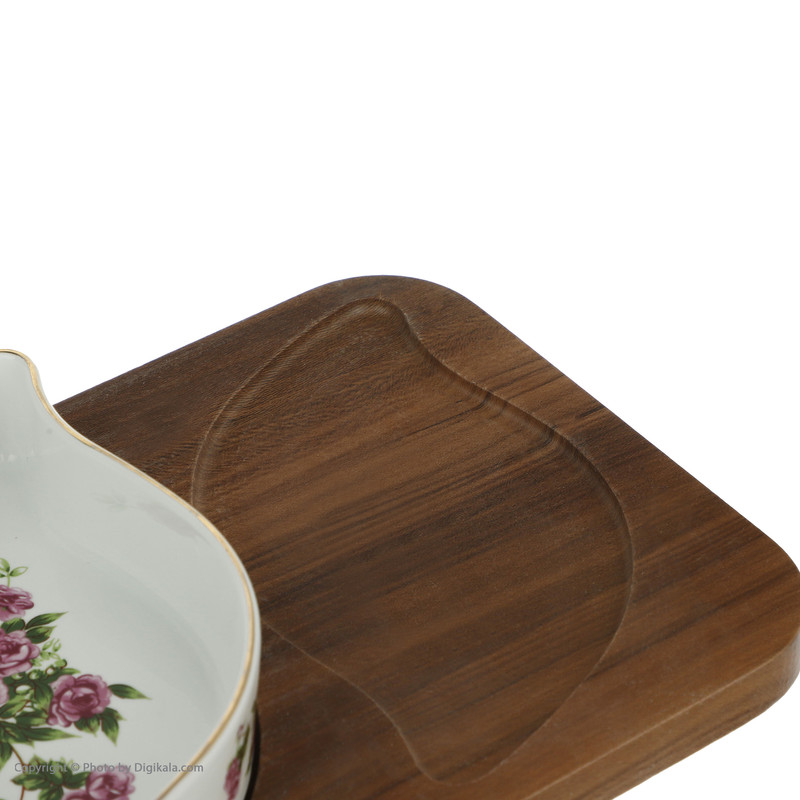 اردو خوری 4 تیکه چینی مارک لمونژ لب طلایی با طرح ریبا و دوست داشتنی گل سرخی با پخت کوره ای در بسته بندی شیک و کادویی