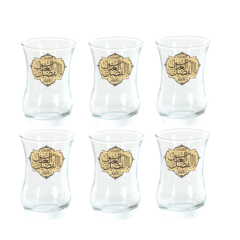 ست 6 عددی استکان کمر باریک بدون دسته طرح السلام علیک یا ابا الفضل العباس