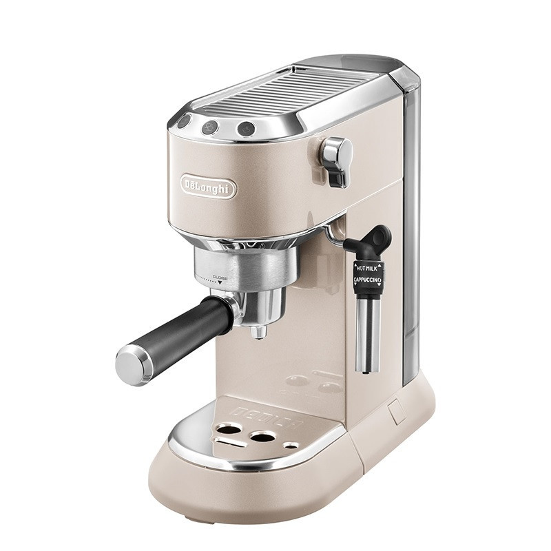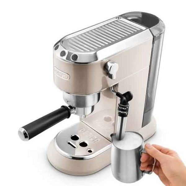 توان مصرفی 1350 وات، دارای پمپ بخار حرفه ای با فشار بخار 15 بار، دکمه تک شات و دبل شات اسپرسو اتومات، دارای استیمر بخار جهت تهیه فوم شیر کاپوچینو و لاته با قابلیت تنظیم جهت درست کردن شیر داغ یا فوم شیر، صفحه گرم کن فنجان، مخزن آب جدا شو وقابل شستشو، قابل قرار گیری فنجان یا لیوان تا حداکثر ارتفاع 120 میلیمتر، در این محصول از دو قطعه کاربردی تمپر استیل و پیچر تمام استیل دلونگی استفاده شده است، طراحی جدید که سایز دستگاه کوچک اما بسیار کاربردی و همچنین کارکرد با دستگاه بسیار آسان میباشد، دارای محلول مخصوص شستشوی مجرای داخلی و پمپ دستگاه که در کارتن محصول موجود میباشد، طراحی و مهندسی در ایتالیا تولید کشور چین، لازم به ذکر است دو رقم حروف لاتین بعد از کد محصول مربوط به رنگ کالا میباشد و با انتخاب رنگ دو رقم کد آخر محصول تغییر میکند