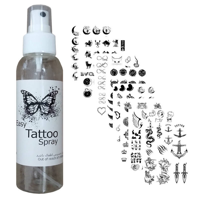 یک ظرف 120میلیگرم اسپری تتو همراه با 260 طرح تتو موقت
