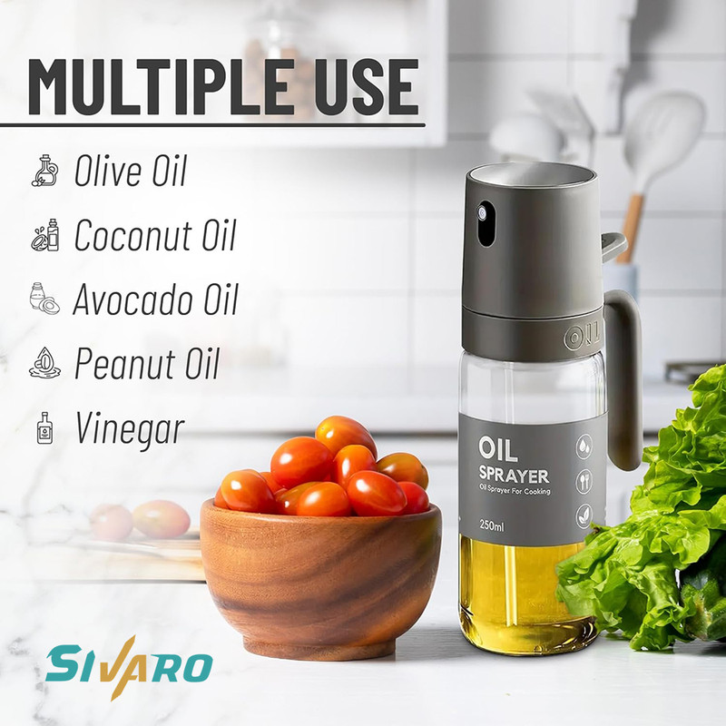 ظرف اسپری روغن را تا ۸۰٪ از روغن دلخواه پر کنید.درب آن را محکم ببندید و چند بار پمپ کنید تا فشار مناسب ایجاد شود.اسپری را در فاصله ۱۵ تا ۲۰ سانتیمتری سطح مورد نظر نگه دارید.بهآرامی دکمه اسپری را فشار دهید تا روغن بهصورت یکنواخت پخش شود.