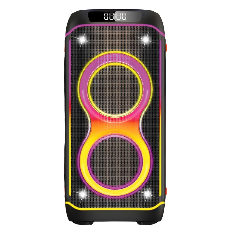 وجود نورپردازی LED دیسکو چندرنگ، فضای هر مهمانی را جذابتر و پرانرژیتر میکند. همچنین با داشتن اتصال بلوتوث، پورت USB، کارت TF، ورودی AUX و رادیو FM، میتوانید بهراحتی از هر منبعی موسیقی دلخواهتان را پخش کنید.