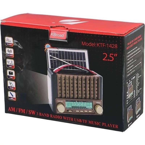 اسپیکر رادیو بلوتوثی KTF-1428 چراغ قوه دار/با پنل خورشیدی