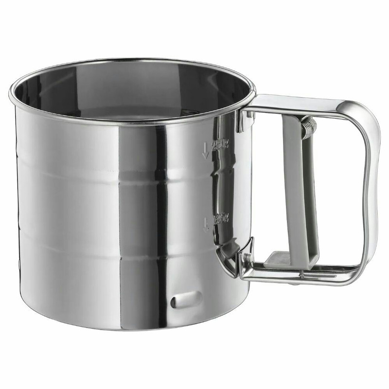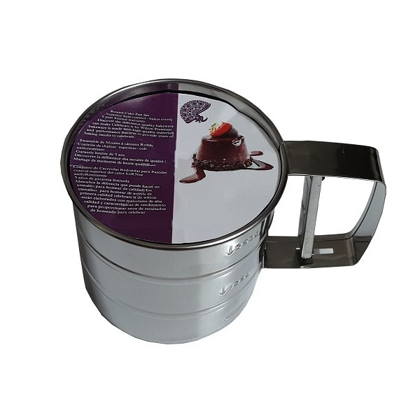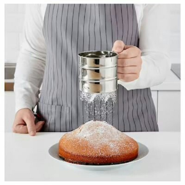 مناسب برای پخش کردن پودر شکر روی شیرینی و کیک دارای قابلیت چرخشی بهوسیله دست برای صاف کردن آرد و شکر، دارای دیواره بلند جهت افزایش ظرفیت و همچنین جلوگیری از بیرون ریخت آرد