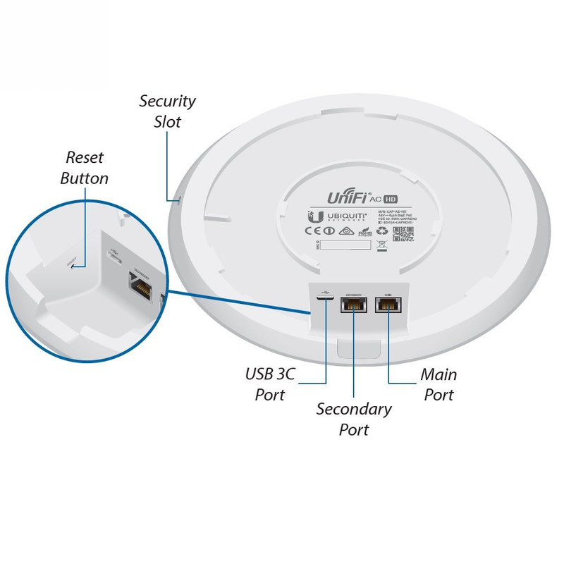 Unifi UAP AC PRO اکسس پوینت بیسیم یونیفای , پوشش همزمان در فرکانس 2.4 و 5 گیگاهرتز , محدوده پوشش 122 متر , امکان اتصال 200+ کاربر