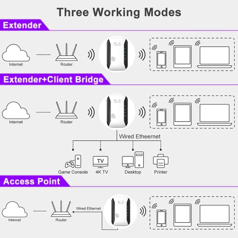 ریپیتر وایفای با سرعت انتقال داده تا ۳۰۰Mbps - LAN و WAN برابر با ۱۰/۱۰۰Mbps