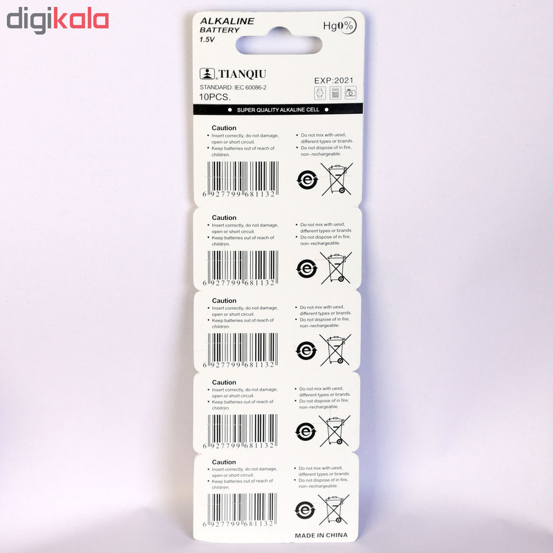 باتری ساعتی تیانکیو مدل LR44 A76 AG13 بسته 10 عددی