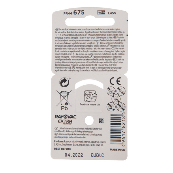 باتری سمعک ریوواک مدل 675 بسته 6 عددی