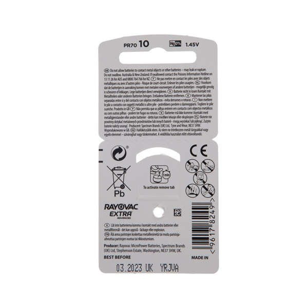 باتری سمعک ریوواک کد 10 بسته 6 عددی