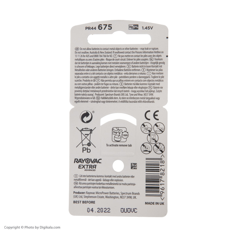 باتری سمعک ریوواک کد 675 بسته 30 عددی