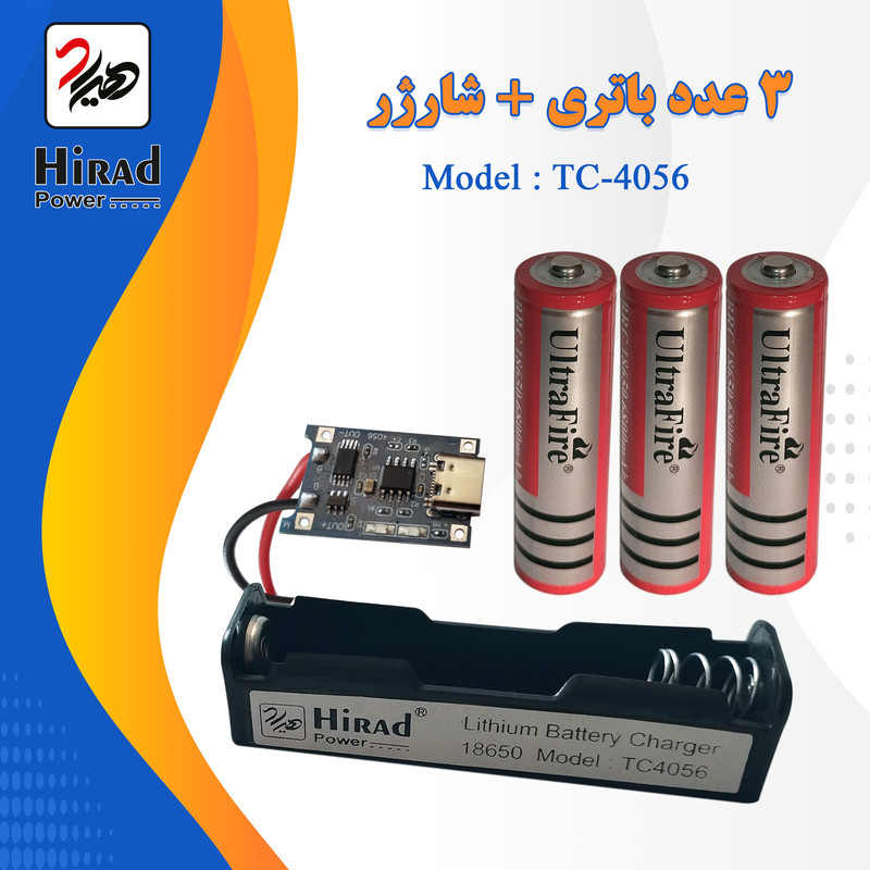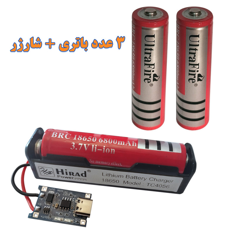 باتری شارژی لیتیوم اولترا فایر مدل 18650 ظرفیت 6800 میلی آمپر به همراه شارژر باتری