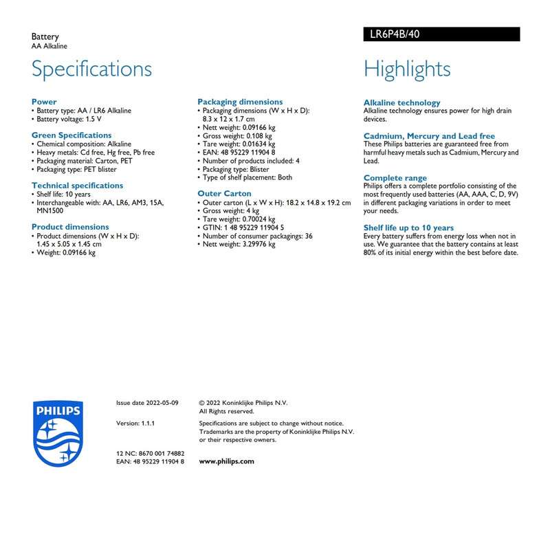 یکی از مهمترین مزیت های باتری های فیلیپس ، نبود مشابه فیک این برند در بازار می باشد که در کنار کیفیت فوق العاده آن ، اطمینان خاطر بسیار زیادی را برای استفاده کننده ایجاد می کند