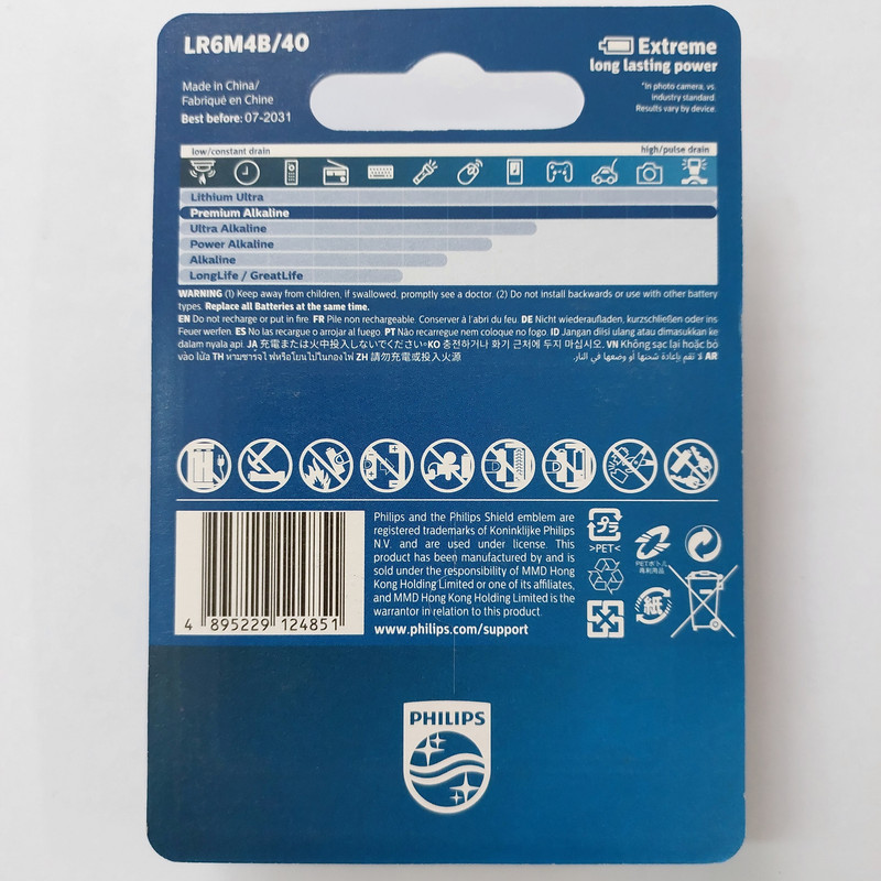 باتری قلمی فیلیپس مدل Premium Alkaline LR6M4B بسته چهار عددی