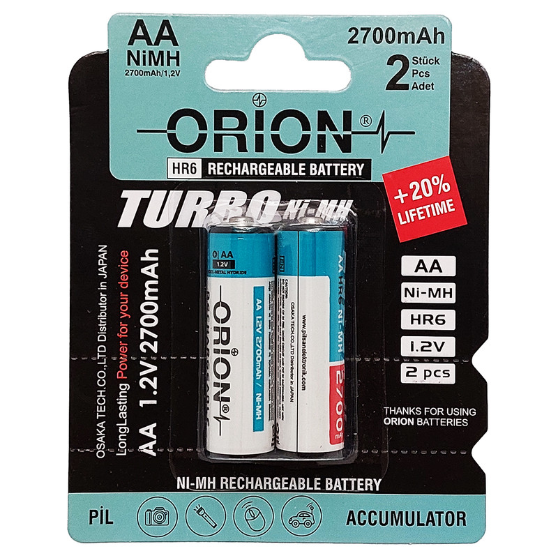 باتری قلمی قابل شارژ اوریون مدل 2700-HR6 بسته 2 عددی