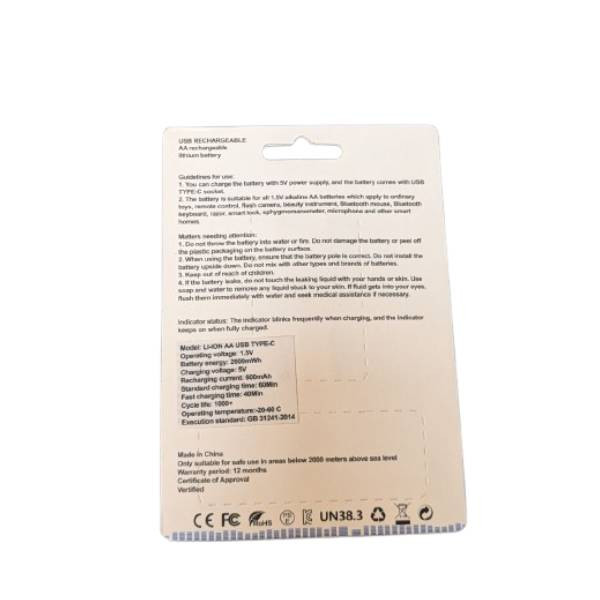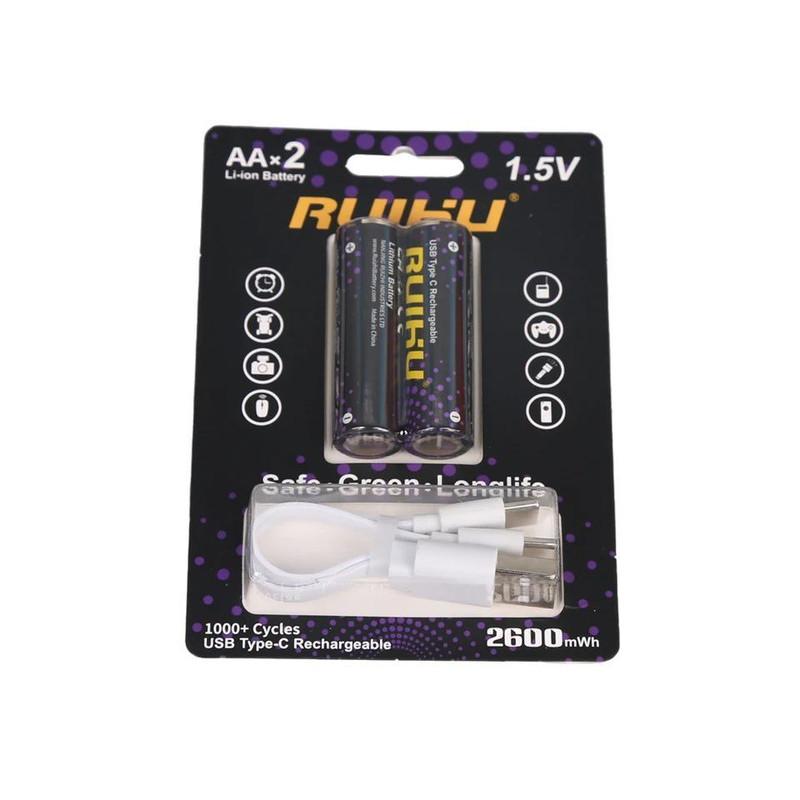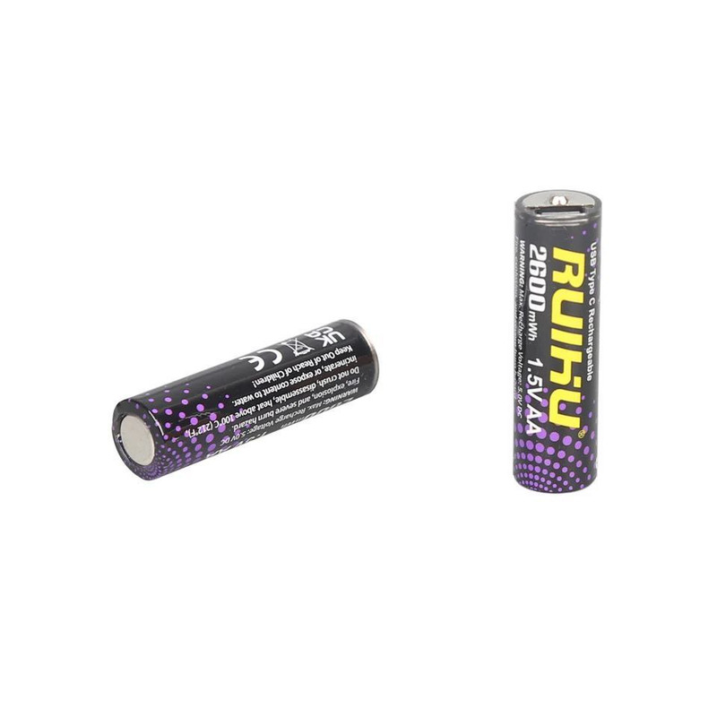 باتری قلمی قابل شارژ مدل type c ظرفیت 2600 میلی آمپر ساعت بسته دو عددی به همراه کابل USB-C
