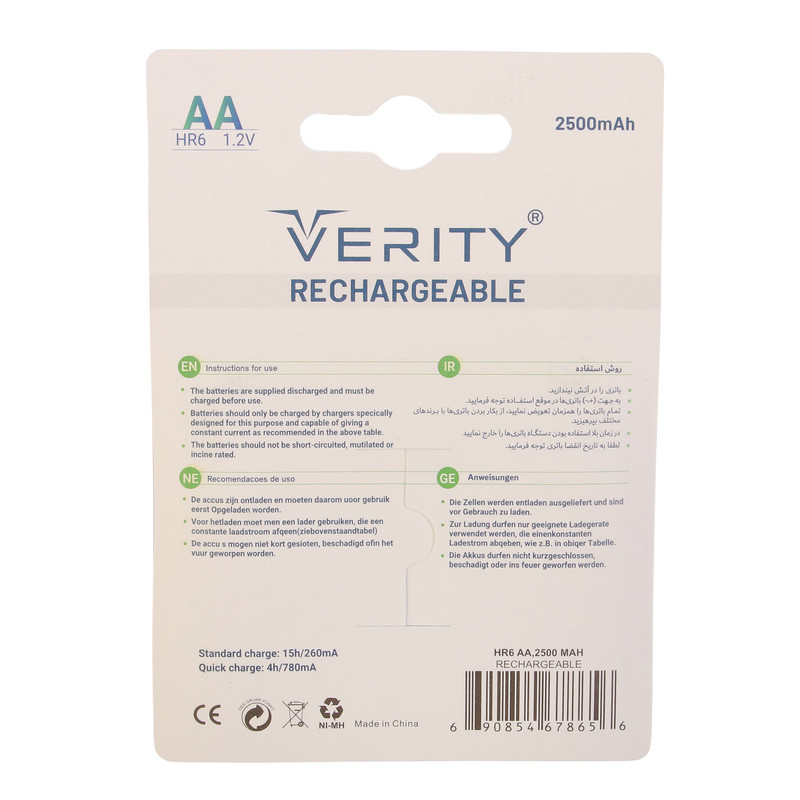 باتری قلمی قابل شارژ وریتی مدل HR6 2500mAh بسته دو عددی