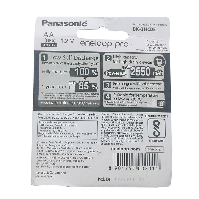 باتری قلمی قابل شارژ پاناسونیک مدل bk-3hcde/Eneloop pro بسته 4 عددی