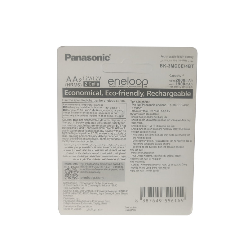 باتری قلمی قابل شارژ پاناسونیک مدل bk3mcce/4bt/Eneloop pro بسته 2 عددی