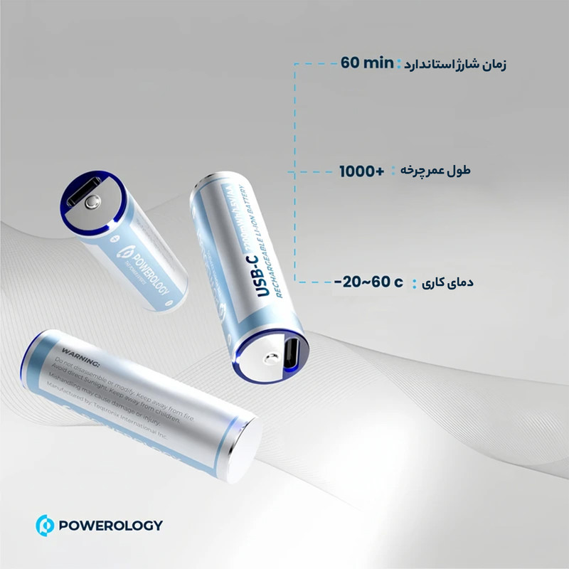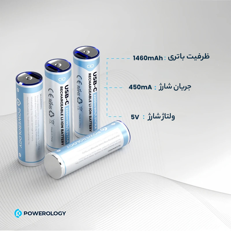 باتری قلمی قابل شارژ پاورولوجی مدل PAAV2 بسته چهار عددی