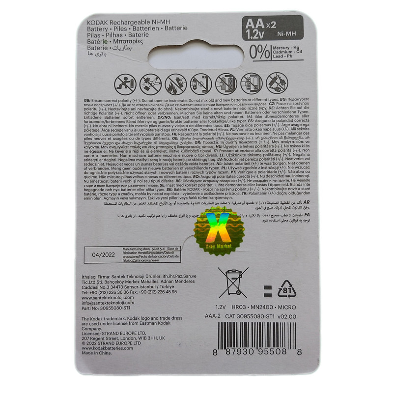 باتری قلمی قابل شارژ کداک مدل Rechargeable raedy to use 2600 mAh XRAY بسته دو عددی
