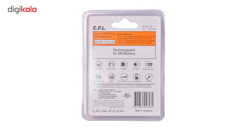 باتری قلمی قابل شارژ CFL مدل 1100mah AA بسته 2 عددی