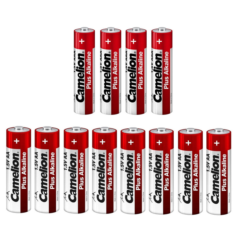 پکیج حاوی باتری های قلمی و نیم قلمی است، 8 عدد باتری قلمی و 4 عدد باتری نیم قلمی