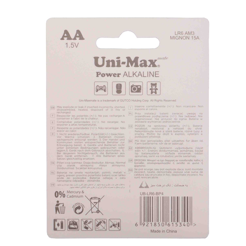 باتری قلمی یونیمکس مدل پاور آلکالاین بسته 4 عددی