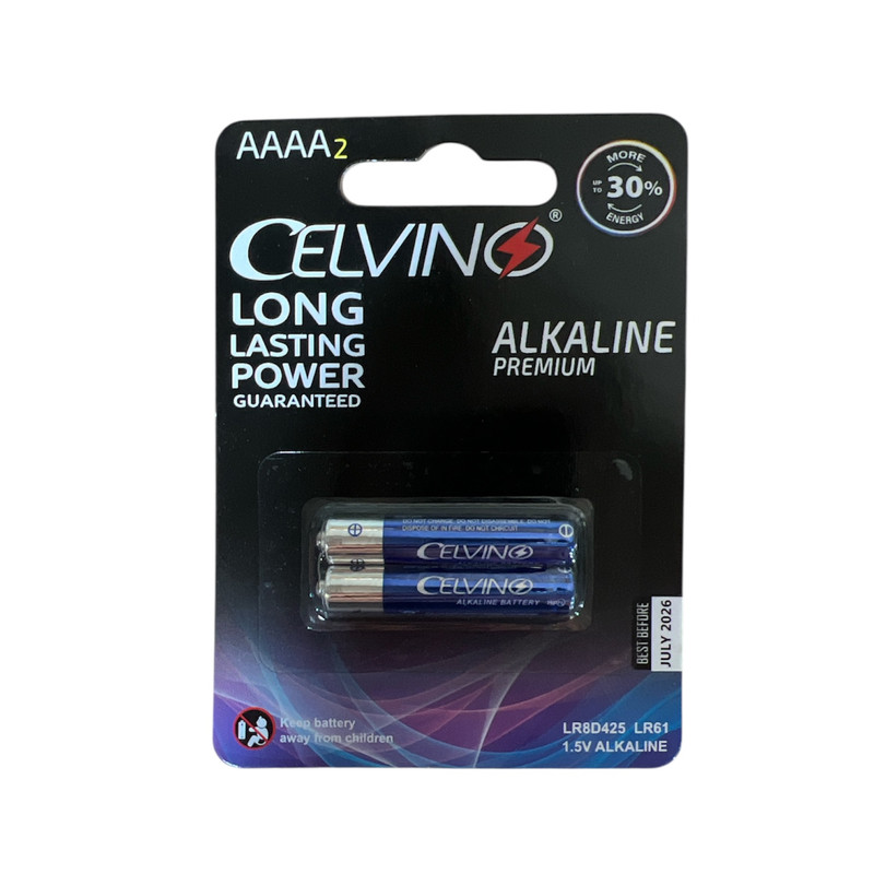 باتری نیم قلمی آلکالاین سلوینو مدل AAAA LR8D425 بسته ۲ عددی