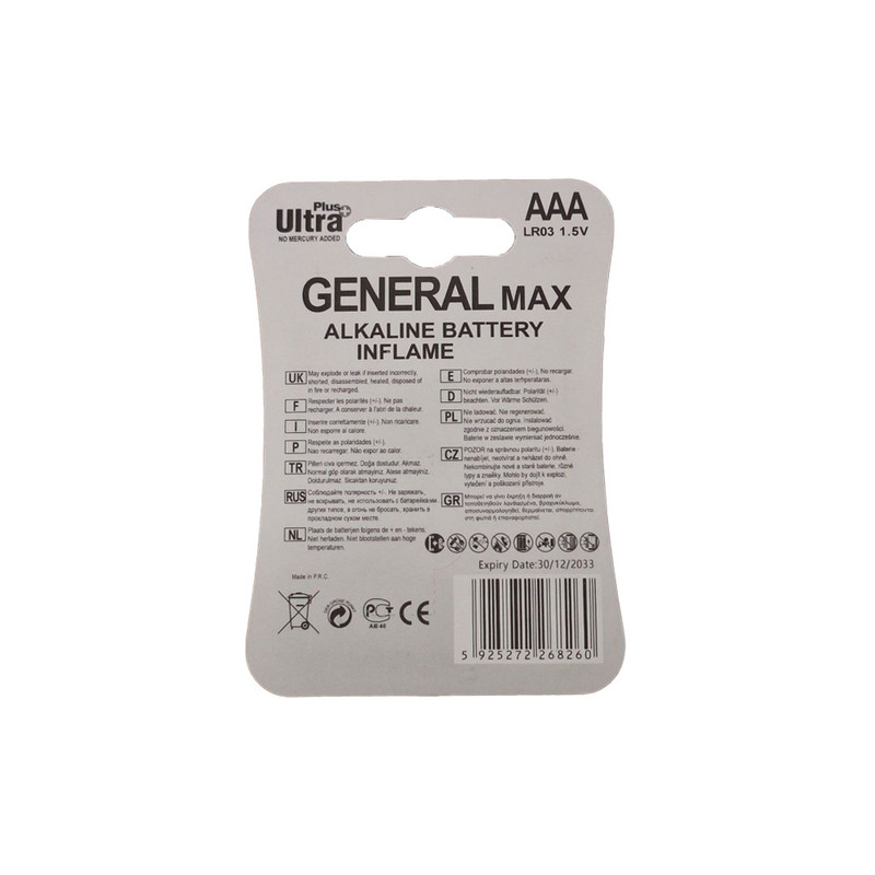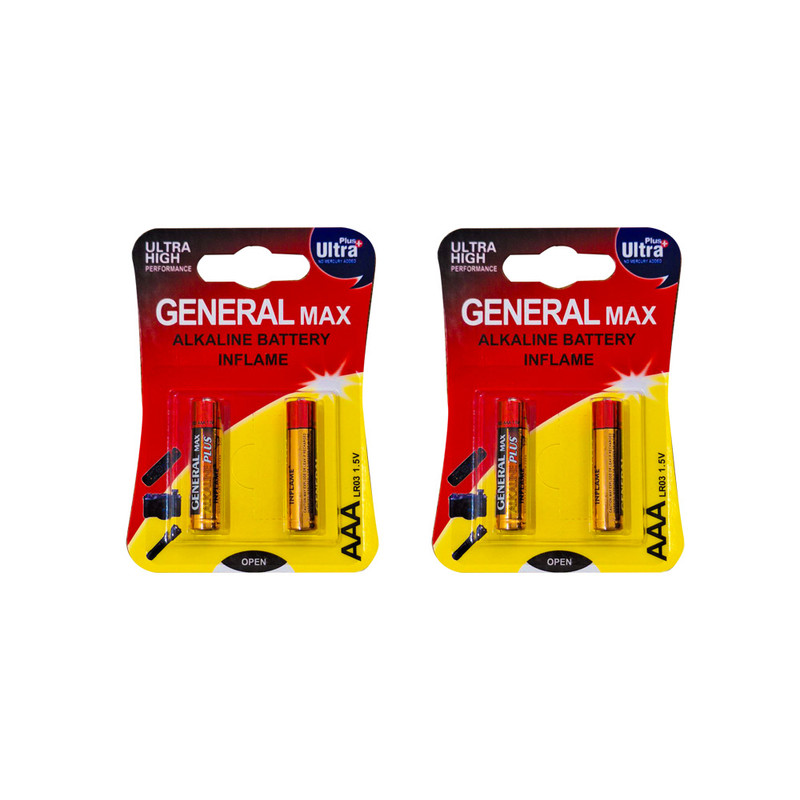 باتری نیم قلمی جنرال مکس مدل آلکالاین بسته 4 عددی